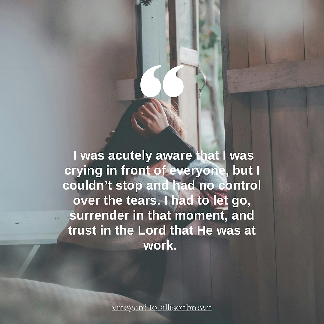 In January, I received some significant healing after a prayer session. After the next 24 hours, I was tired but okay until I wasn’t. The tears started to flow, and I couldn’t stop. I was acutely aware that I was crying in front of everyone, but I couldn’t stop and had no control over the tears. I had to let go, surrender in that moment, and trust in the Lord that He was at work. While He was working like a surgeon on my heart, He had surrounded me with people who loved me through these moments of tears.
